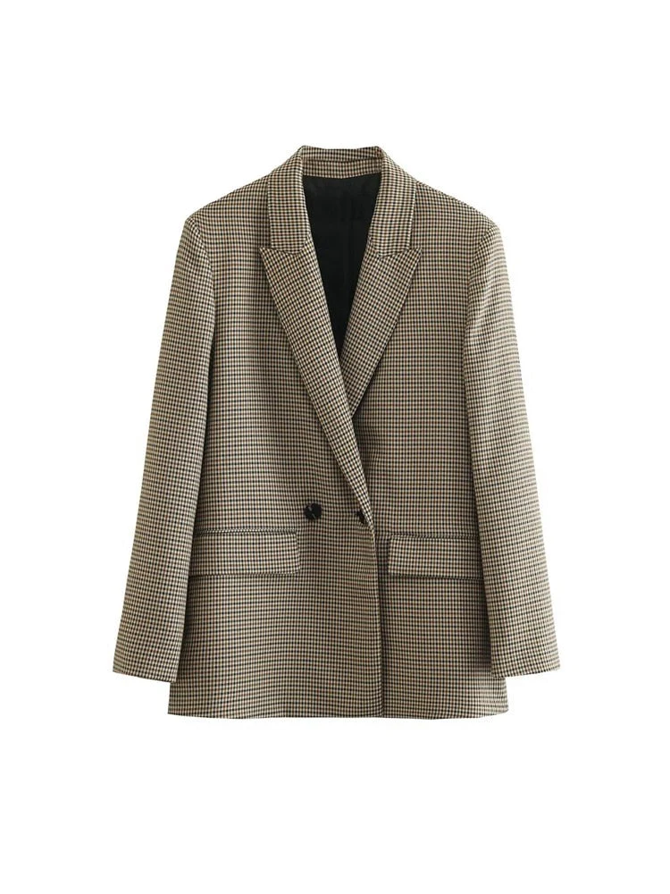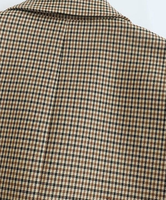 Blazer xadrez oversized com manga longa – feminino.